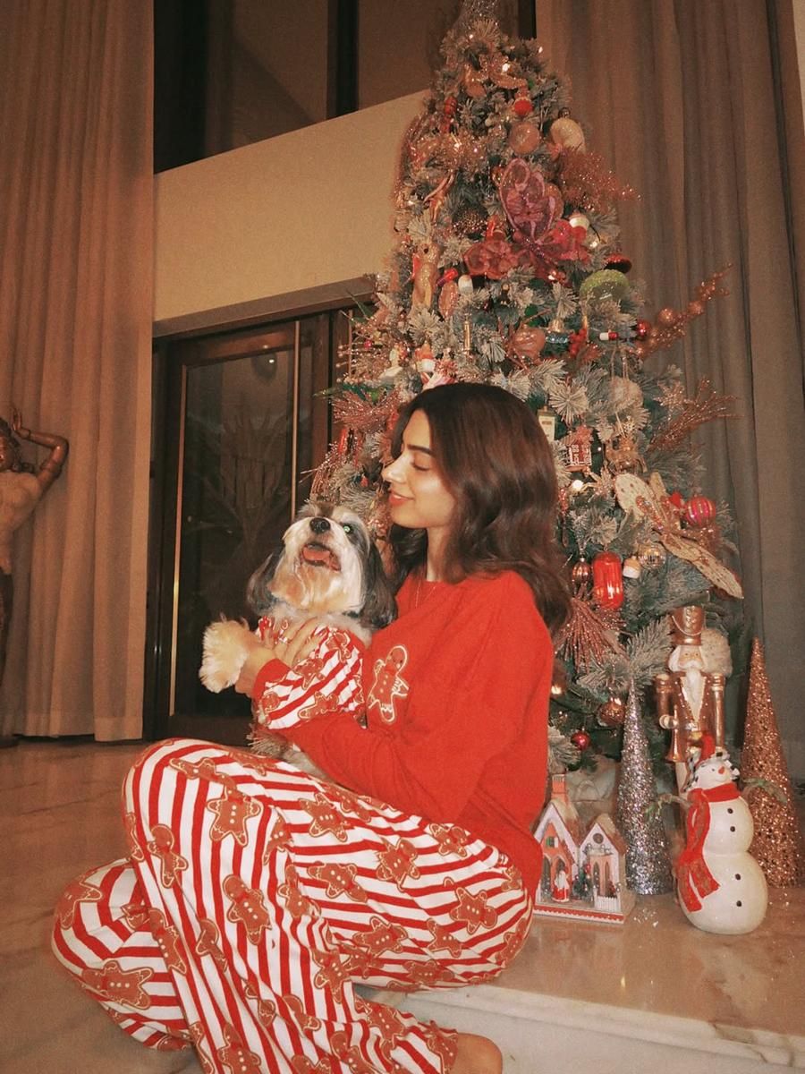 Pohon Natal berukuran besar juga terlihat menghiasi salah satu sudut rumah Khushi Kapoor, yang beragama Hindu sejak kecil. Ia tampak sangat senang dalam merayakan Natal.